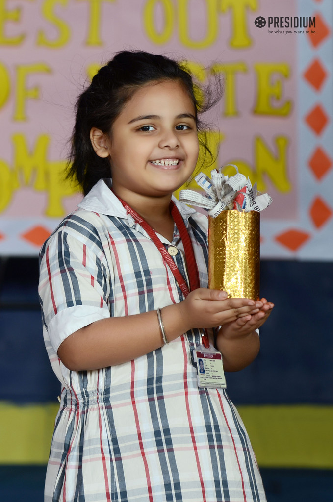 Presidians of grades 1 to 3 participated in ‘Best Out of Waste Competition’ to create love for environment by making things out of recyclable objects. The students used their imagination and creativity to make innovative things. They used broken bangles, plastic bottles, waste nails, peanut shell, beads, thermocol glasses, old CD etc to make cloth doll, wall hanging, night lamp, and paper flowers. The criteria for the competition was presentation, use of material, and innovation. It was an enriching learning experience for the students.