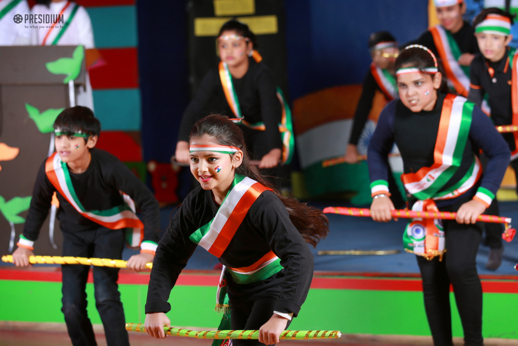 With immense pride and patriotism, Presidians celebrated Republic Day. The festivities commenced on a musical note, as the choir group played a note which reverberated throughout with the feeling of patriotism. The entire school courtyard was shining in the shades of tricolor. The ceremony began with the hoisting of the tricolor by the honorable chairperson Sudha Gupta Ma'am. It was followed by inspiring speeches on the significance of the occasion, the spectacular NCC drill, dance and drama which stole the hearts of everyone. Everyone took a pledge to uphold the honor, integrity, dignity, and uniqueness of our nation.
